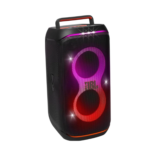 160 W JBL party speaker with epic light show, swappable battery, dual mic/guitar, splash-resistant and App-controlled for unforgettable parties.