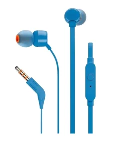 Compact in‑ear earphones with JBL Pure Bass, anti‑tangle cable, and built‑in mic for music & calls.